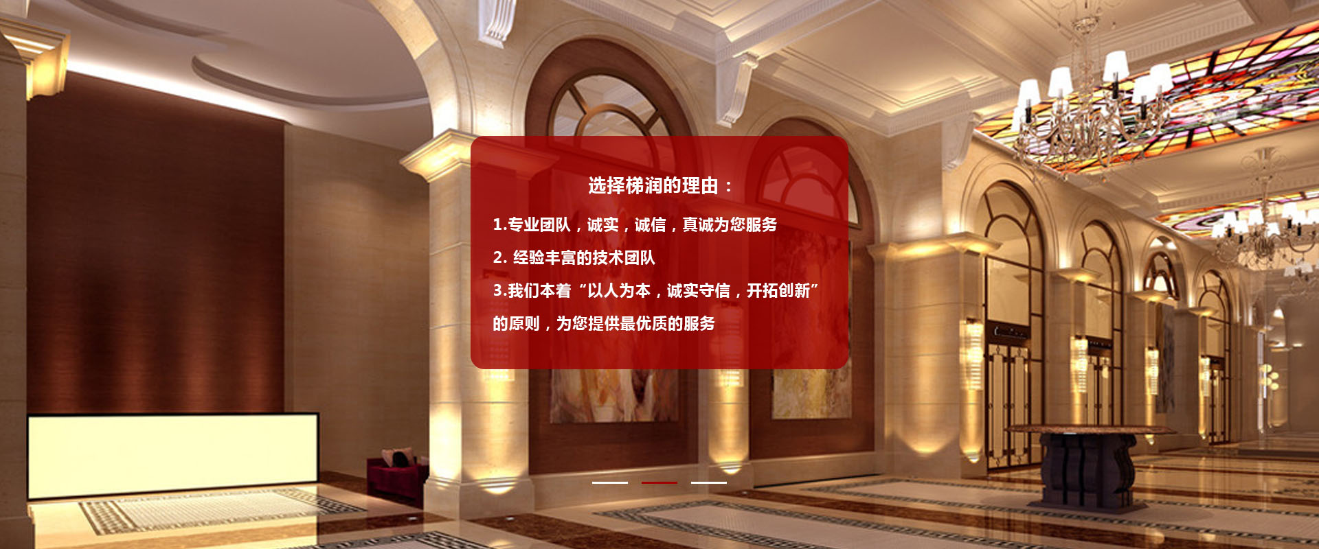 電梯裝潢包括:高檔轎廂裝潢、觀光梯,別墅梯及自動扶梯等裝潢,電梯轎廂裝飾吊頂加工、各類扶手加工、各種大理石及PVC地面裝飾,廳轎門裝飾和大小門套及前壁裝飾等。